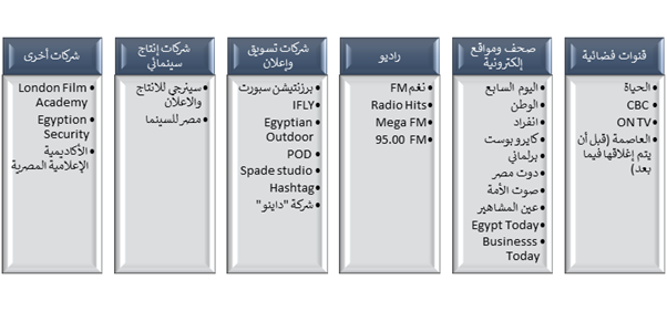 وفيما يلي نوضح أسماء المؤسسات الإعلامية التي استطاعت "إعلام المصريين" الاستحواذ عليها: