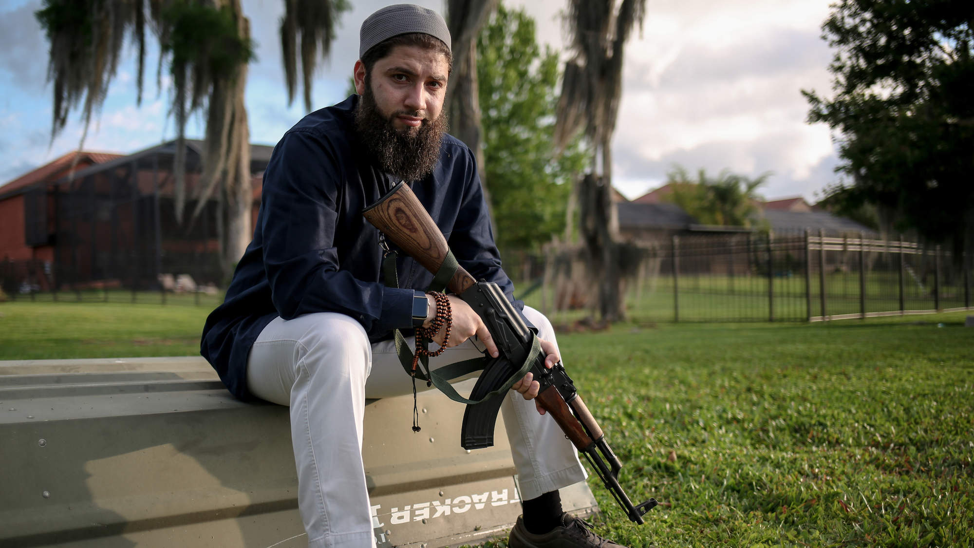 ويقول: "هذا أمر غير معتاد في أوساط المسلمين. أظن أنَّ الناس لا يرون في الإنسان المسلم شخصاً يمكنه أن يحمل سلاحاً أو يخفيه، أو أن يذهب إلى ساحة للتدريب على الرماية، دون أن يُنظَر إليه بعين الريبة".