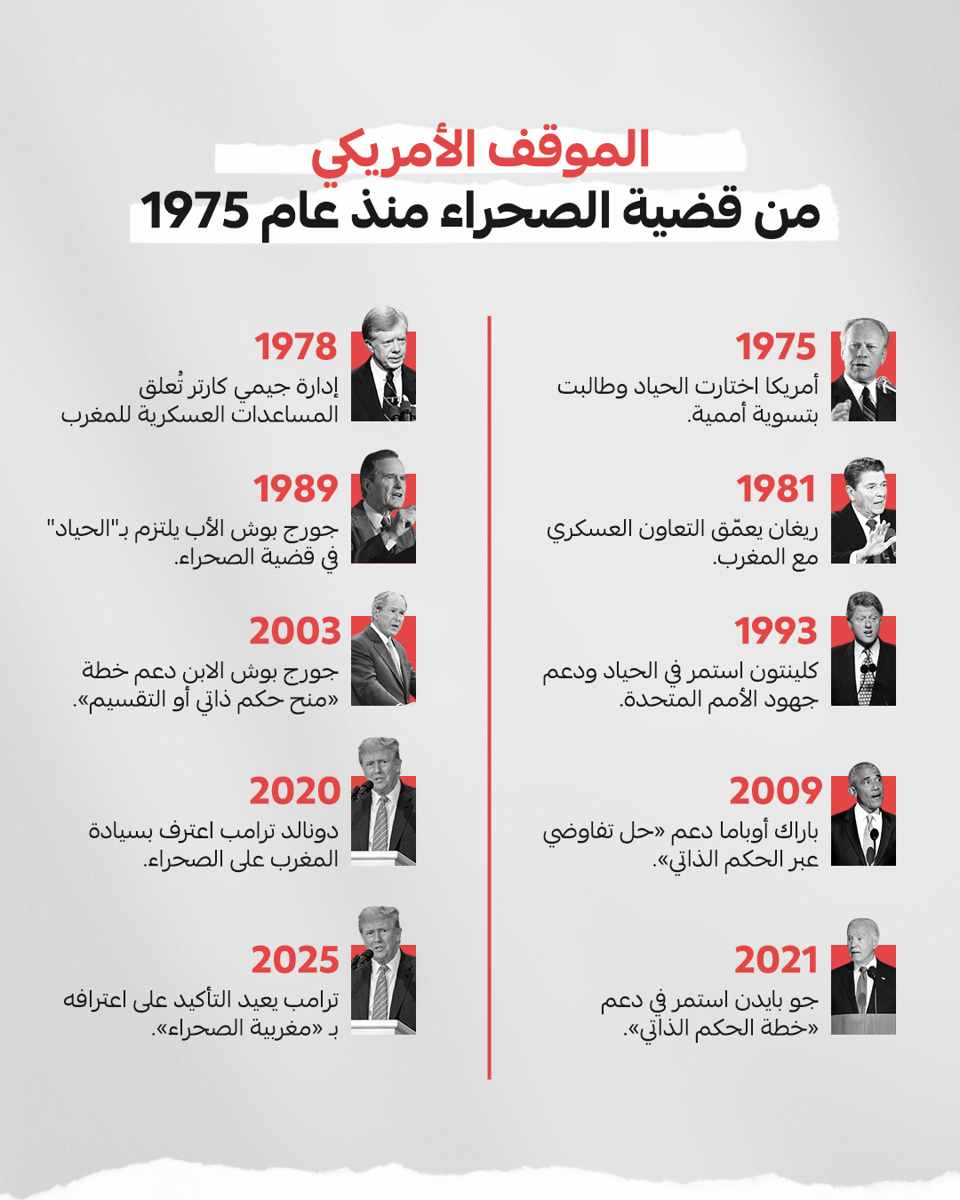 منذ ذلك الحين، تحولت سياسة أمريكا إلى "الحياد الإيجابي" تجاه النزاع بين الرباط والجزائر حول الصحراء: فهي تزود الجيش المغربي بالأسلحة الأمريكية، لكنها تجنبت دعم مطالبه السياسية صراحة.