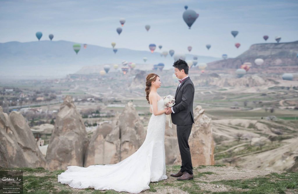تعد كبادوكيا التركية مدينة مشهورة حول العالم، بفضل كنائسها المنحوتة في الصخور، ومدنها الممتدة تحت الأرض، ومناطيدها الحائمة في السماء. لكن، إلى جانب هذه الخصائص التي تجذب السياح؛ أصبحت كبادوكيا، وعلى نحو متزايد، مكاناً يتوافد عليه الأزواج الأجانب من أجل التقاط صور لحفل الزواج.