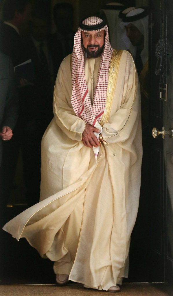 بينما حلَّ رئيس دولة الإمارات العربية المتحدة، خليفة بن زايد، في المركز 43، ووصفته المجلة بأنه أكثر الملوك العرب ثراءً، كما أشارت إلى سيطرته على 97.8 مليار برميل من احتياطي النفط، بالإضافة إلى إبعاده الجماعات الإسلامية المتطرفة عن الإمارات.