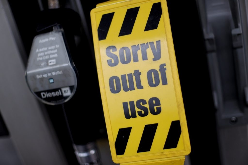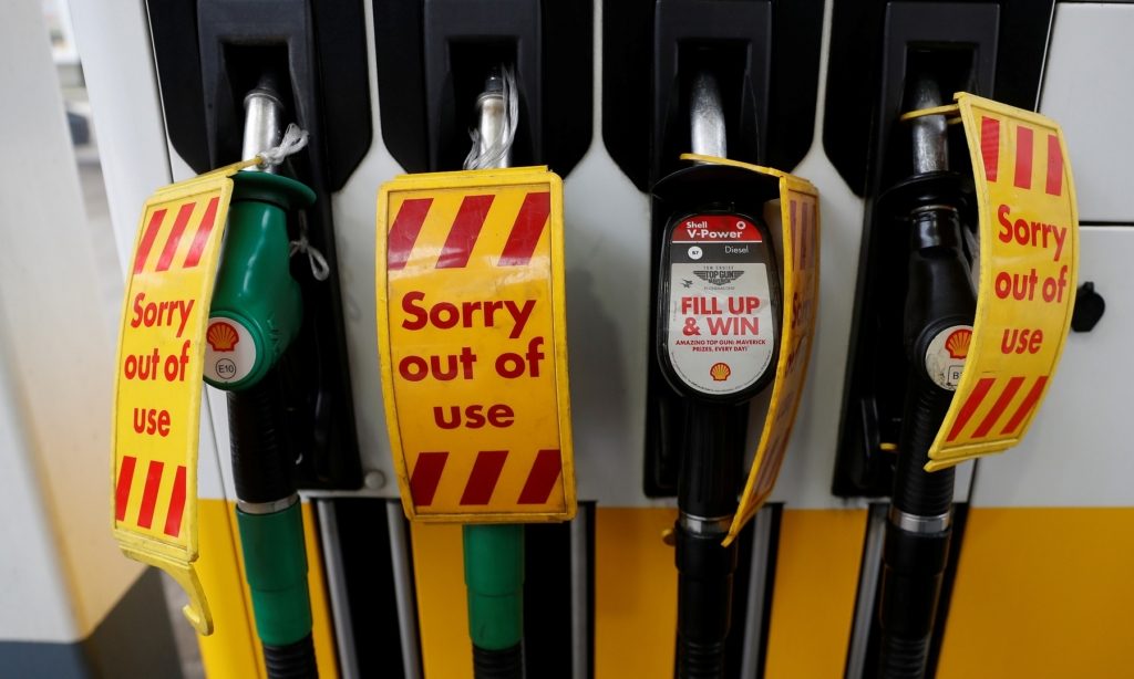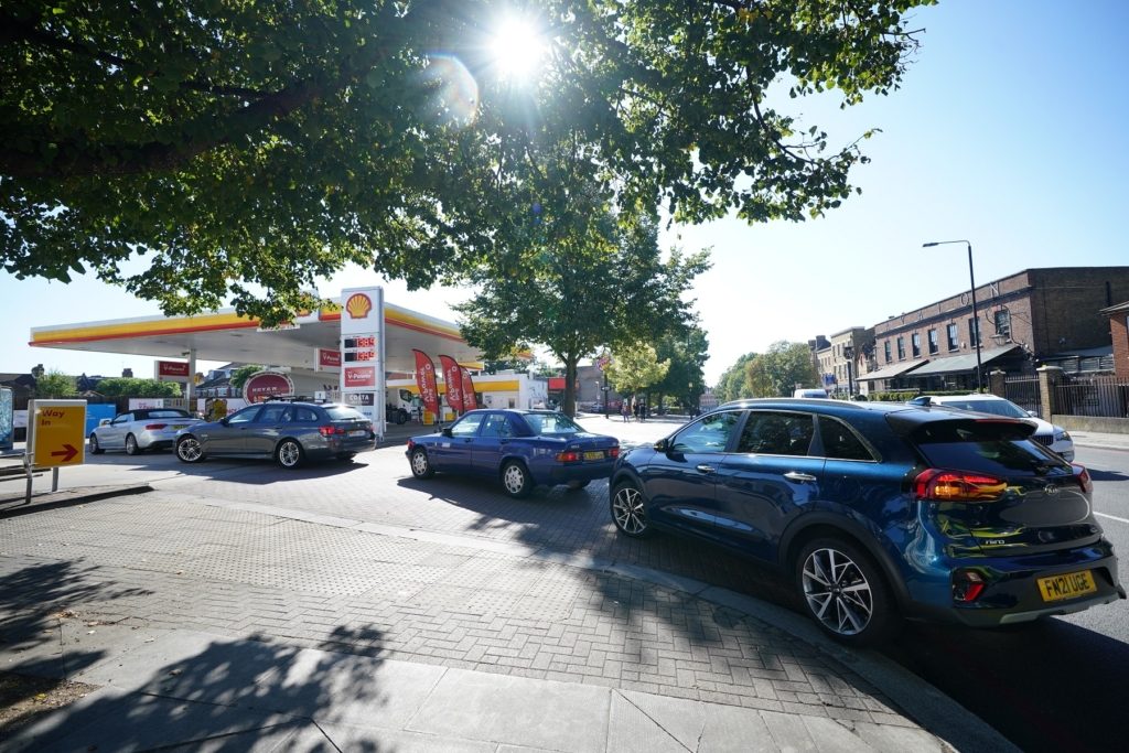 في سياق متصل تشكلت طوابير سيارات طويلة بلندن، السبت، اصطفَّت أمام المحطات؛ للتزود بالوقود. والجمعة، قال وزير النقل غرانت شابس، إن البلاد لديها مخزون كبير من الوقود، وطالب الناس بمواصلة التزود بالوقود كالمعتاد.