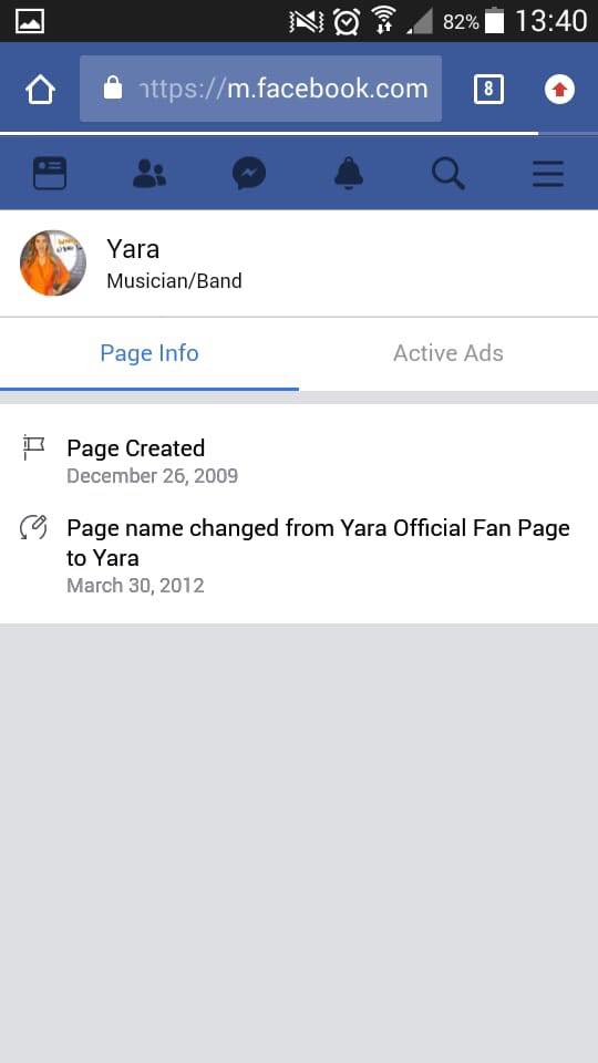 فكانت الصفحة في البداية تخص الفانز التابعين لها وكانت باسم Yara Official Fan Page، ثم غيرتها لتتحول إلى الصفحة الرسمية لـ"Yara".