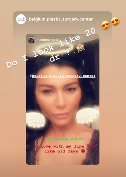 ومن الواضح أن صاحبة الامبراطورية الضخمة المتخصّصة في صناعة مستحضرات التجميل أصبحت تملك ثقة كبيرة بالنفس، بعدما قرَّرت التخلّي عن الفيلير في شفتيها. الأمر نفسه الذي فعلته المملثلة اللبنانية نادين الراسي، التي تخلَّصت من الحشو في شفتيها الأسبوع الماضي، وأعلنت ذلك عبر تطبيق الصور السريعة (Insta Stories) على إنستغرام، مُتسائلة فيما إذا كانت تبدو أصغر بـِ 20 عاماً؟!