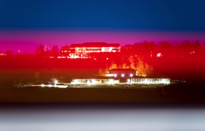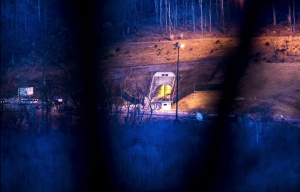 صورة بخاصية التعريض الطويل تصور الأنوار الخلفية والأمامية لشاحنة مارة وهي تضيء مركز عمليات طوارئ ماونت هيذر، قرب بلومونت في ولاية فرجينيا. هذه المنشأة فائقة السرية، المقامة على مساحة 650 فداناً، تشمل مخابئ ستكون هي الموقع الجديد لأعضاء الفرع التنفيذي من الإدارة الأميركية، بما في ذلك أعضاء مجلس الأمن القومي، في حالة اندلاع حربٍ نووية. وعلى الرغم من أنَّه لم يزر أي صحفي الموقع، علموا بوجوده عام 1974 حين اصطدمت إحدى طائرات خطوط ترانس وورلد الجوية الأميركية بالجبل وقُتل ركابها الـ92.