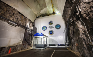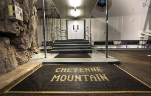المدخل إلى منشأة قيادة دفاع الفضاء الجوي الأميركية الشمالية "نوراد" داخل مركز جبل شايان للقوات الجوية في مدينة كولورادو سبرينغز في ولاية كولورادو الأميركية.