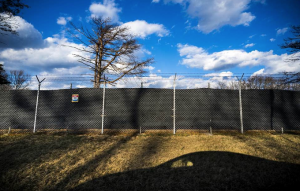 غطاء مشمع أسود لتغطية مركز عمليات طوارئ ماونت ويذر عن أعين السائقين، على طول طريق جبل بلوريدج قرب منطقة تراب في ولاية فرجينيا.
