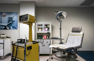 وحدة الرعاية المركزة داخل مخبأ نووي كان فيما سبق سرياً ويعود لفترة الحرب الباردة، بُني لأعضاء الكونغرس أسفل غرينبريير، وهو منتجع أربع نجوم قرب مدينة وايت سيلفر سبرينغز في ولاية ويست فرجينيا. اكتمل بناء الملجأ المضاد للقنابل على مساحة 34,303 متر مربع عام 1961، ويشمل أسرة ومؤن تكفي لتسكين أعضاء المجلس التشريعي بأكمله البالغ عددهم 535، إضافةً إلى موظفٍ لكلٍ منهم. ويوجد به أيضاً غرف تعقيم، وغرفة لتقديم البيانات الإعلامية، وجميعها محاطة بمتر إلى متر ونصف من الخرسانة.